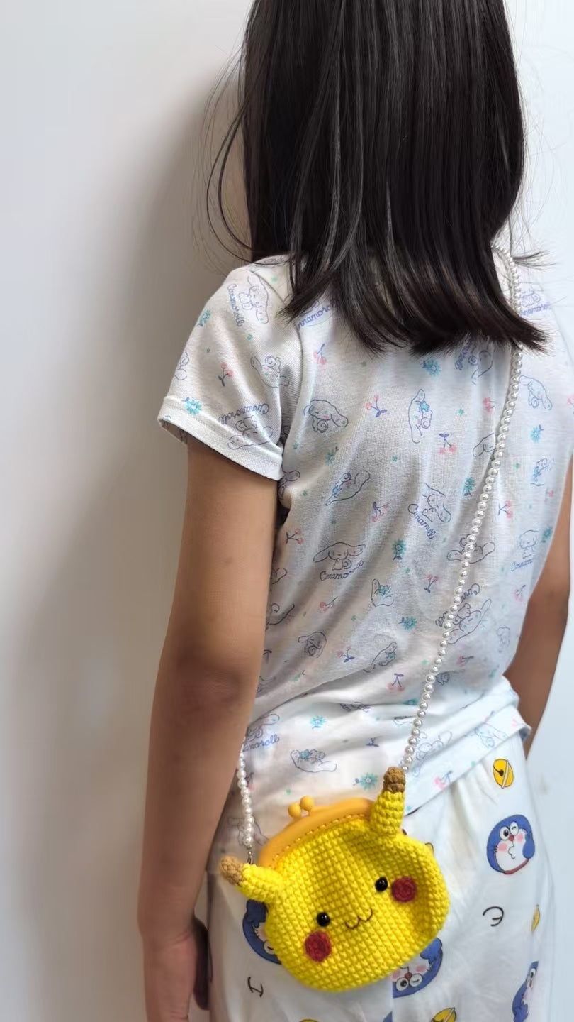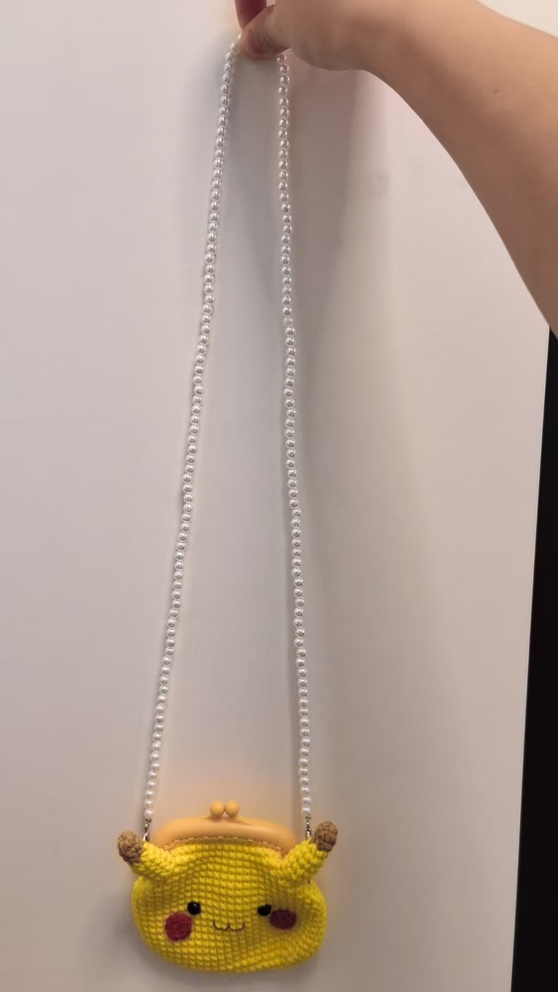It's a card wallet. It looks like a Pikachu, which is very realistic. It's yellow. It has a matching long chain of pearls (88cm) that is suitable for both children and adults. The chain can be removed as a card bag or hung up as a crossbody bag or shoulder bag. Size: 10.5cm*10cm.